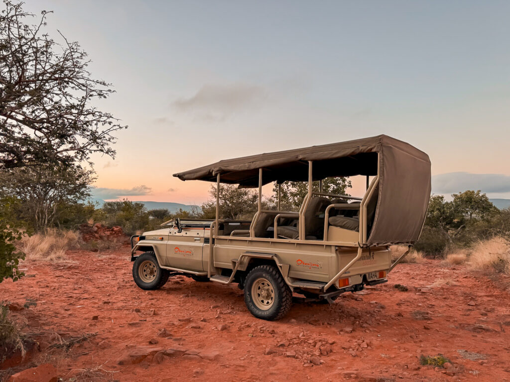 Tip: In de nacht kan het flink afkoelen in Namibië. Tijdens de ochtendsafari is daarom een warme trui, sjaal en muts geen overbodige luxe. In de 4×4 liggen ook fleecedekens.